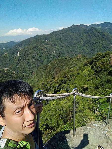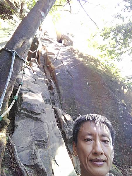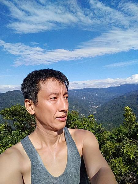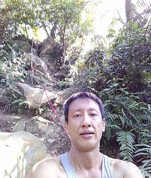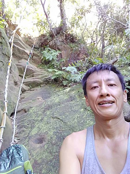 圖-6 攝於五寮尖山頂,標高639公尺,經過森林浴的洗禮、全身手脚的協力運動,身心舒暢,是不是看不出來已過知天命之年?