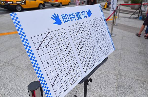由於曾參加路跑42公里;因此,頗有信心可以站立超過10小時。8月29日早上8:30報到後,抽到編號116,位置在前輪上方的引擎蓋上,一般而言,比在車窗、前檔風玻璃的位置好些,然而最好的位置是在後行李廂或引擎蓋正前方。我在比賽前上了2次大號,心中慶幸過程中將不致會發生內急,而需棄賽,算是有好的開始。