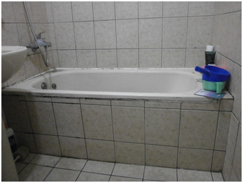 圖1-1 改造前之浴室,鐵製之浴盆漆被刷掉,看起來髒黑。