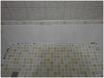 圖1-2 改造前之浴室,磁磚在接縫處也有黑霉。