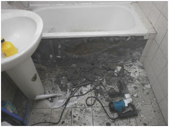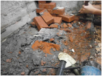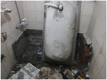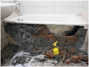 圖-7 當浴盆之重要支撐點破碎後,浴盆如旱地拔葱般,輕易拆除。