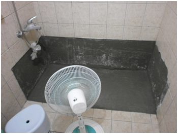 圖-14 用風扇吹一個晚上,讓地面水泥沙乾硬後,再塗刷彈性水泥,做好地面的防水措施。